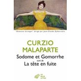 La tête en fuite a été écrit pendant le temps passé par Malaparte dans la prison romaine de Regina Coeli et la relégation de Lipari, où il a été envoyé en répression de son attitude de provocation, non-alignée sur le régime fasciste, qu'il a attaqué violemment. A ces pages marquées par l'incarcération, Malaparte a voulu ajouter quelques textes écrits en France et en Angleterre peu de temps après. Il en résulte un recueil de souvenirs, de réflexions et d'études sur la littérature où l'auteur semble se réfugier dans les lettres pour mieux s'échapper par l'esprit. Sodome et Gomorrhe est la première nouvelle écrite par Malaparte en 1931, dans laquelle il explore le mythe biblique pour raconter une réalité plus politique.
