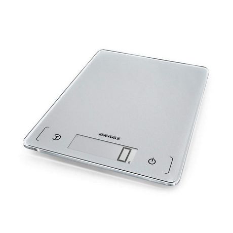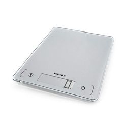 Soehnle 61504 Balance de cuisine électronique Soehnle 61504 Page Comfort 300 Slim. - Type du produit : Balances de Cuisine.Matériau : Verre.Dimension plateau : 22x 17 x 0.99 cm.Couleur : Argent.Touche sensitive : Oui.Portée : 10Kg.Graduation : 1 g.Grand Affichage LCD : 20 mm.Ultra plate : 9.9 mm.Fon