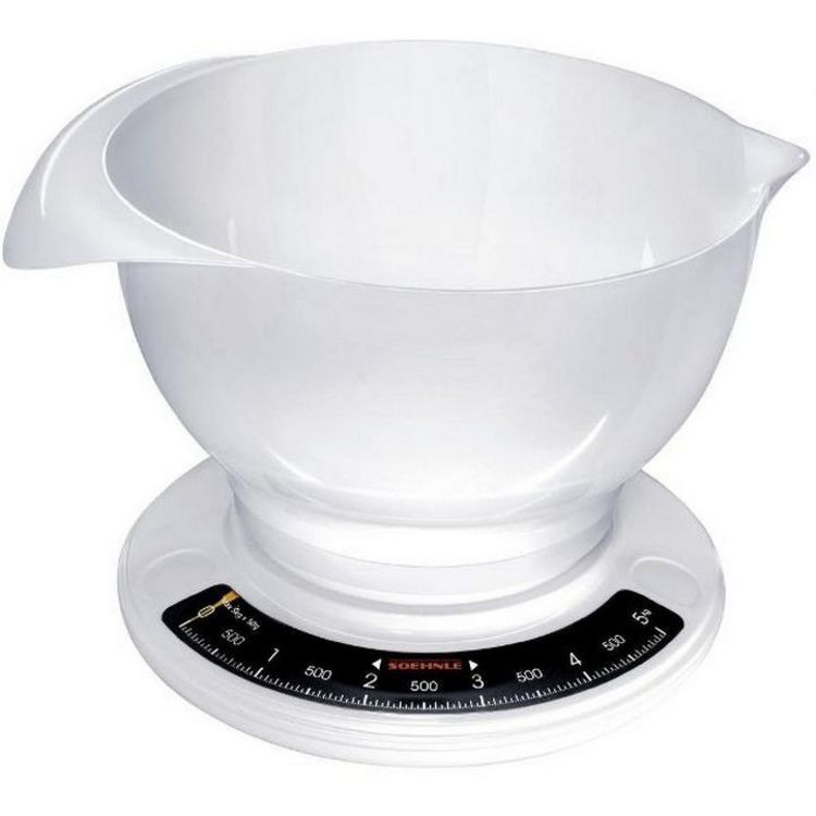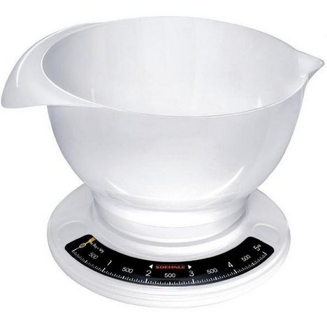 Soehnle 65054 Balance de cuisine mécanique Culina Pro 65054 de Soehnle. Une balance de cuisine parfaite pour une utilisation quotidienne. Très simple à utiliser et pratique avec son grand bol de pesée ! Fonction Tare mécanique grâce au cadran tournant permettant également des pesées additionnelles. Grand bol blanc de 2.5 L avec poignée et bec verseur.