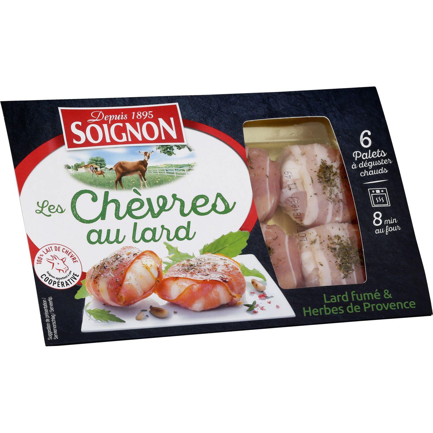 Fromage de chèvre (60%) : LAIT de chèvre pasteurisé*, sel, conservateur : E202, ferments lactiques, coagulant, Lard (39%) : poitrine de porc*, eau, sel, dextrose, antioxydant : E316, conservateurs : E250, fumée ; Herbes de Provence (1%) * Origine UE