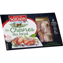 Fromage de chèvre décongelé au lait pasteurisé enrobé de lard fumé décongelé