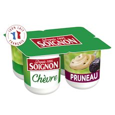 Un yaourt au lait de chèvre au goût tout doux et gourmand avec des morceaux de pruneaux