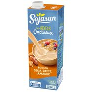 Ingrédients : Jus de soja 93% (eau, graines de soja 5%), datte 5%, amande 1,7%, stabilisants : farine de graines de guar, gomme gellane, sel