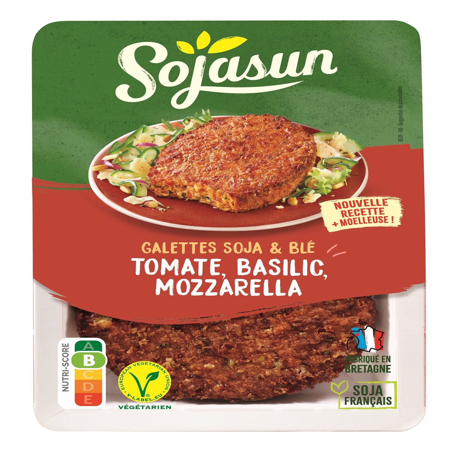 Galettes de soja et blé aux tomates basilic et mozzarella