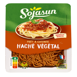 Ingrédients : Farine protéique de SOJA* réhydratée 63%, eau, oignon 9%, concentré de tomate 6,5%, huile de tournesol, fibres de SOJA*, jus concentré de légumes 1,5% (oignon, tomate), sel, gélifiant : méthylcellulose, extrait d'oignon 0,3%, jus concentré de citron, sucre, poivreTraces éventuelles de gluten de blé, lupin et céleri*SOJA filière française, garanti sans OGM