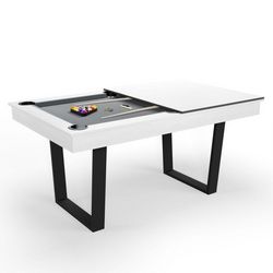 Dans un salon ou dans une chambre, elle peut se convertir en table à manger ou en bureau, grâce au plateau (en 2 parties) inclus et peut accueillir confortablement 6 personnes. Surprenez vos invités après le repas en transformant votre table à dîner en table de jeu et profitez ensemble du plaisir d'une partie de billard.