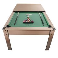 Cette table de billard peut se convertir en table à manger ou en bureau, grâce au plateau (en 2 parties) inclus et peut accueillir confortablement 8 personnes.