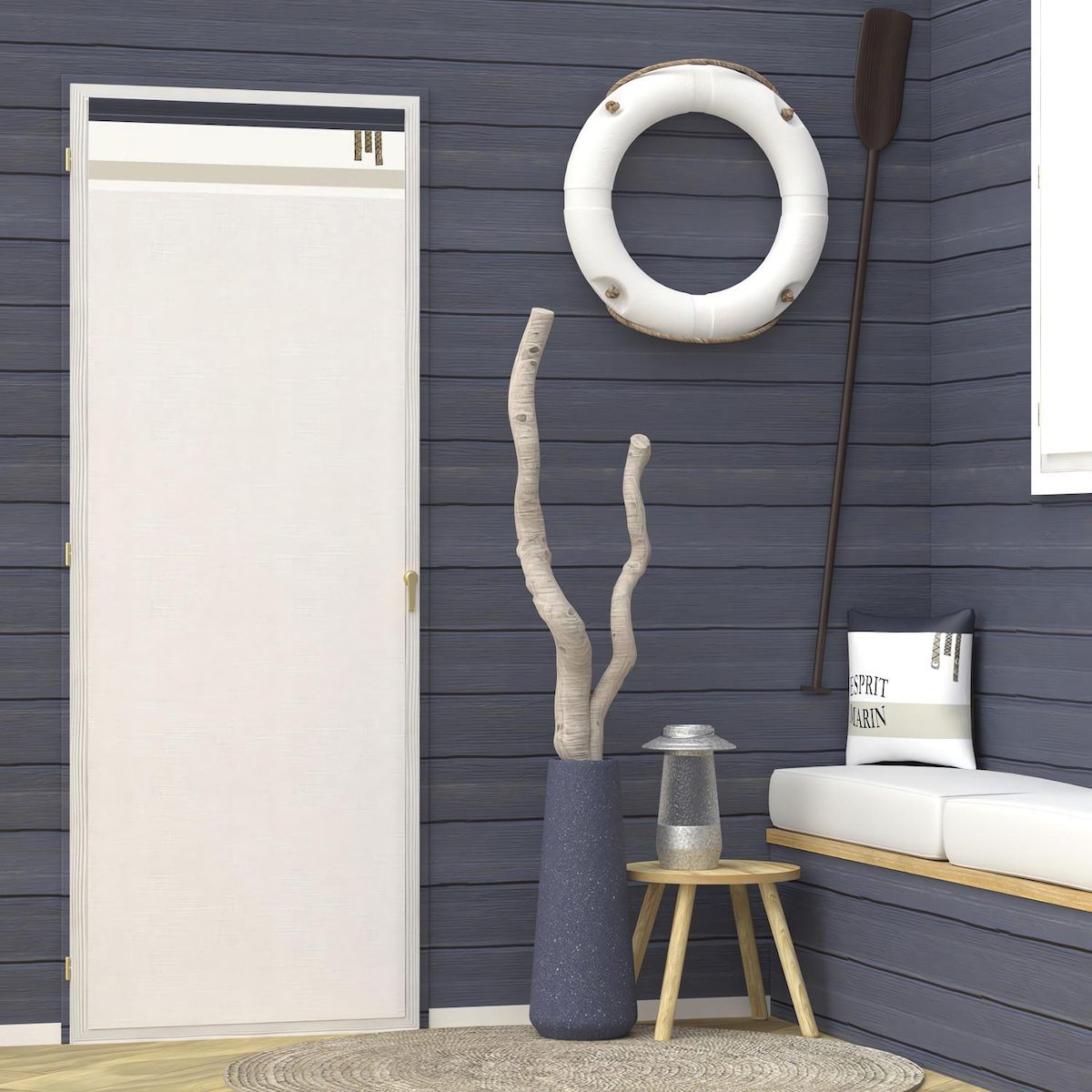 Laissez-vous embarquer par l'ambiance chic et contemporaine de cette collection ESPRIT MARIN. Elle promet de donner àvotre intérieur une belle escapade. Finition: Passe-tringle. 3 cordes en patch comme élément décoratif. Couleur: Bleu, blanc et taupe. Composition: 100% coton. Entretien: Lavage àfroid en machine.