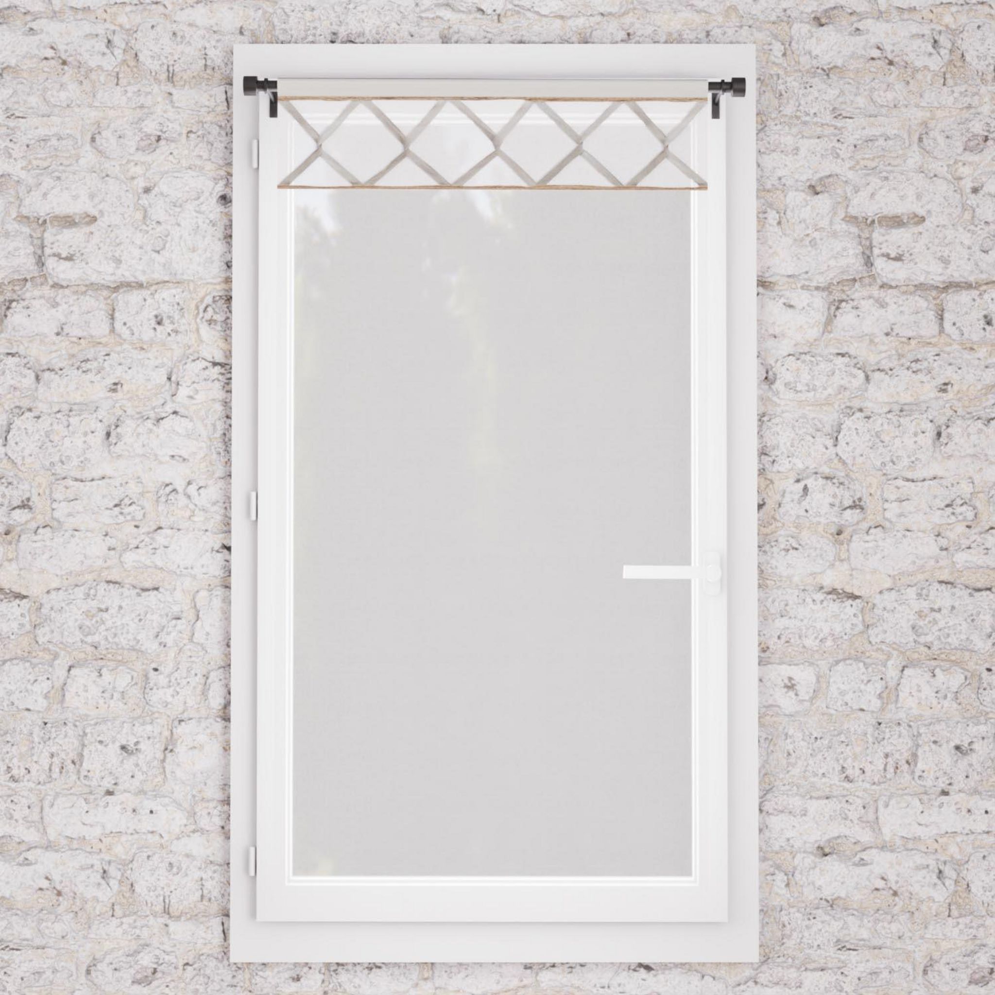 Cette collection Aude est idéale pour apporter douceur et charme àvotre intérieur. Finition: Passe tringle. Lacet en coton et biais en jute. Couleur: Blanc et gris. Composition: 100% coton avec biais en jute. Entretien: Lavage àfroid en machine.