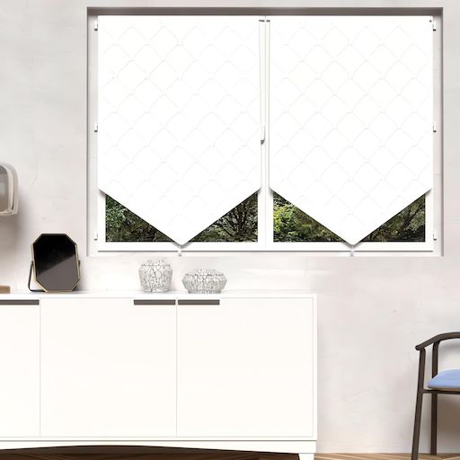 Ce brise-bise PAULINE habillera vos fenêtres avec douceur et modernité. Finition: Passe tringle, prêt a poser. Finition à pointe avec pompon. Couleur: - Blanc. Composition: - 100% polyester Jacquard. Entretien: Lavage en machine à 30 degrès.