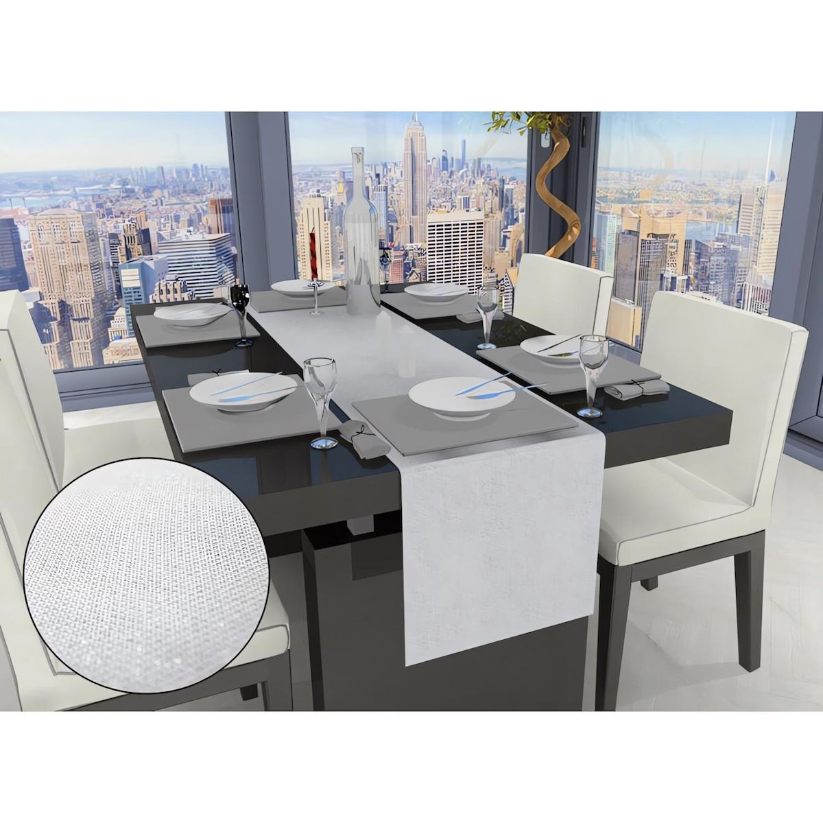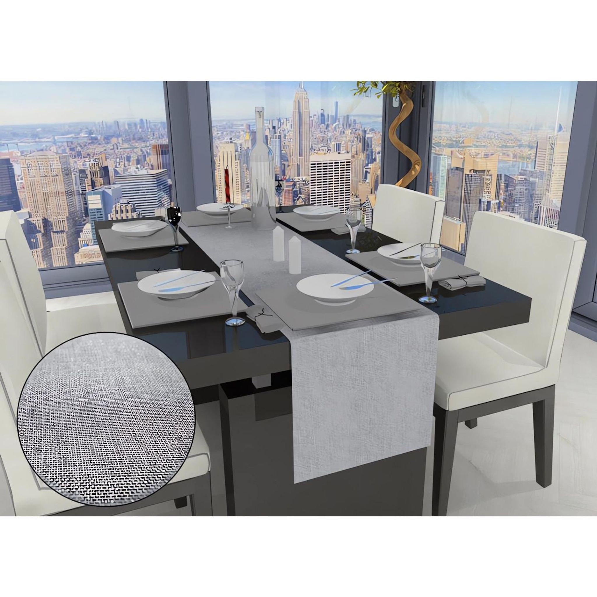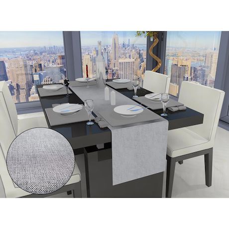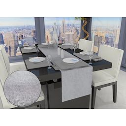 Le chemin de table Bella pour habiller votre table d'une touche de chic. Vous apprécierez son tissu jacquard aux paillettes argentés. Le chemin de table Bella pour des repas ultra gourmand. Matière : 100% polyester Dimension : 140 x 40 cm