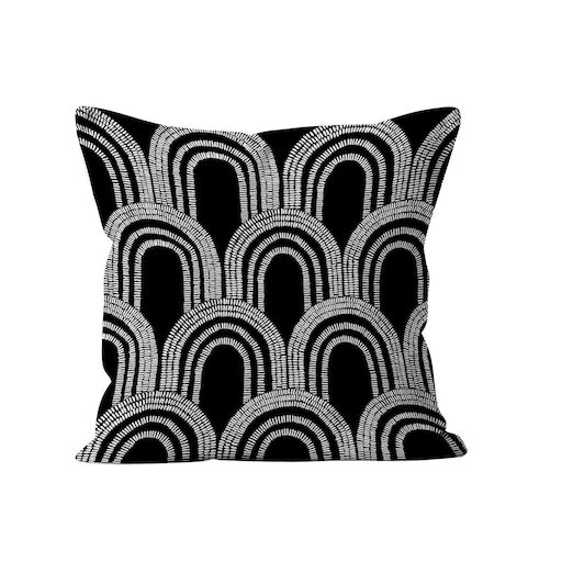 Une belle touche de modernité avec cette collection DUNE en polyester noir et blanc. Finition: Fermeture à zip. Couleur: Blanc et noir. Imprimé double face. Composition: - Enveloppe: 100% polyester. - Garnissage: 100% polyester. Dimensions: 40x40 cm. Entretien: - entretien facile, repassage inutile. - lavable en machine 30°c.