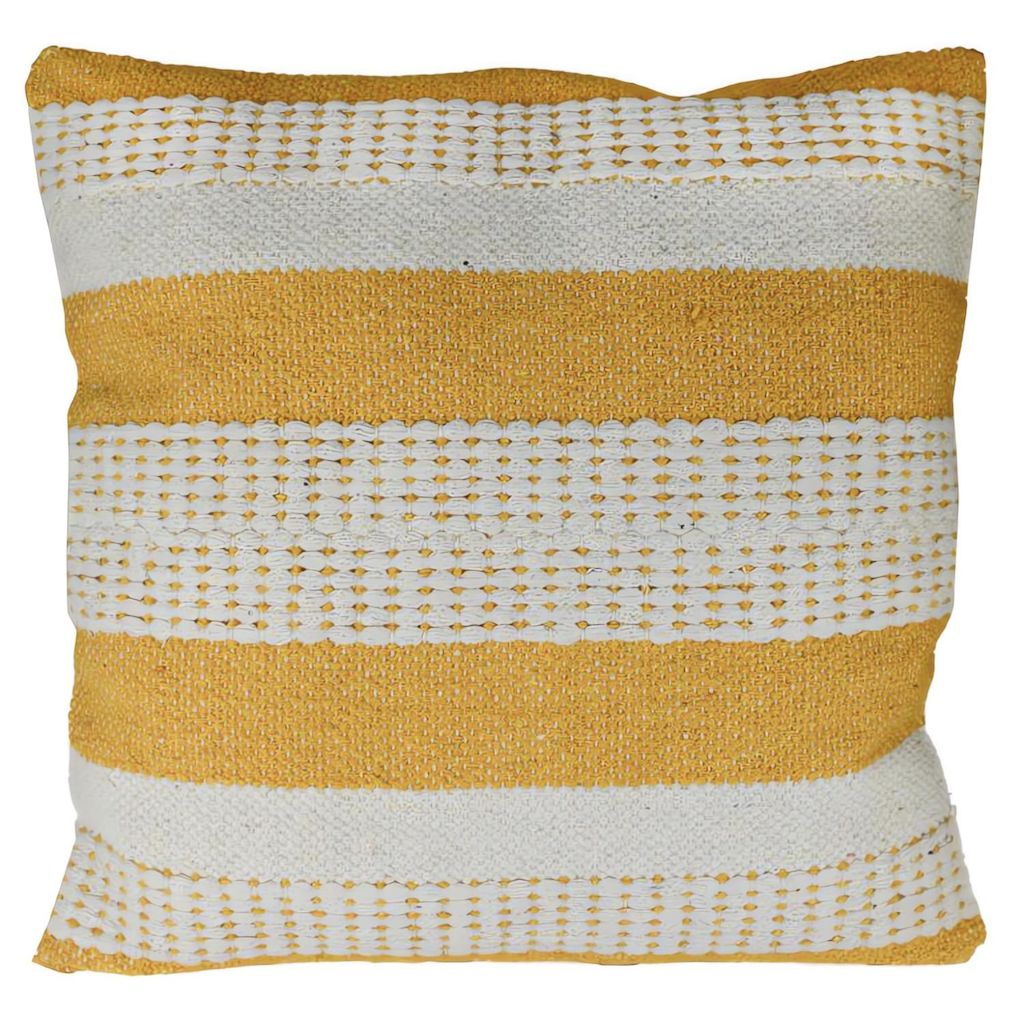 Coussin en Macramé (technique de tissage de noeuds avec de la ficelle, tissu ou cordes ), au design actuel et tendance, idéal pour donner un côté un peu ethnique et chaleureux à votre décoration. Finition: Fermture à Zip. Couleur: Jaune et écru. Composition: - enveloppe 100 % coton. - garnissage: 100% polyester. Dimensions : 45x45 cm. Entretien: Lavage en machine à froid. Ne pas utiliser de javel, pas de séchage au sèche linge, ni pressing.