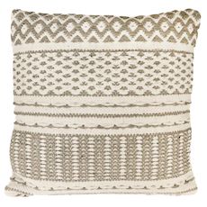 Coussin en Macramé (technique de tissage de noeuds avec de la ficelle, tissu ou cordes ), au design actuel et tendance, idéal pour donner un côté un peu ethnique et chaleureux à votre décoration. Finition: Fermture à Zip. Couleur: Beige et taupe. Composition: - enveloppe 100 % coton. - garnissage: 100% polyester. Dimensions : 45x45 cm. Entretien: Lavage en machine à froid. Ne pas utiliser de javel, pas de séchage au sèche linge, ni pressing.