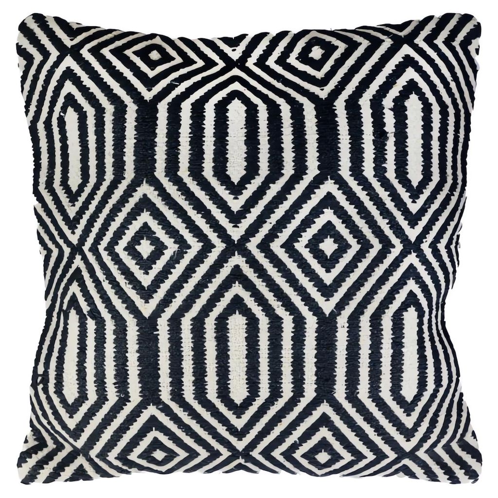 En savoir +Coussin en Macramé (technique de tissage de noeuds avec de la ficelle, tissu ou cordes ), au design actuel et tendance, idéal pour donner un côté un peu ethnique et chaleureux à votre décoration. Finition: Fermture à Zip. Couleur: Noir et blanc. Composition: - enveloppe 100 % coton. - garnissage: 100% polyester. Dimensions : 45x45 cm. Entretien: Lavage en machine à froid. Ne pas utiliser de javel, pas de séchage au sèche linge, ni pressing.