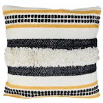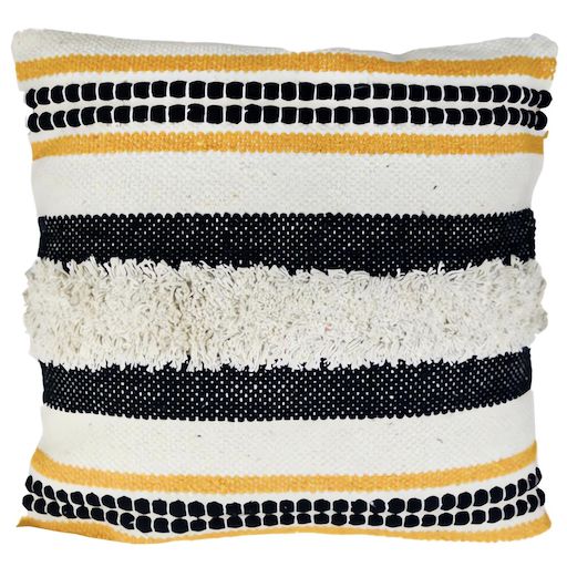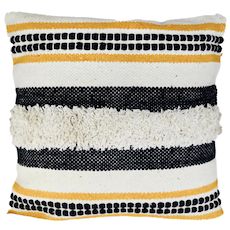 En savoir +Coussin en Macramé (technique de tissage de noeuds avec de la ficelle, tissu ou cordes ), au design actuel et tendance, idéal pour donner un côté un peu ethnique et chaleureux à votre décoration. Finition: Fermture à Zip. Couleur: Ecru, noir et jaune. Composition: - enveloppe 100 % coton. - garnissage: 100% polyester. Dimensions : 45x45 cm. Entretien: Lavage en machine à froid. Ne pas utiliser de javel, pas de séchage au sèche linge, ni pressing.