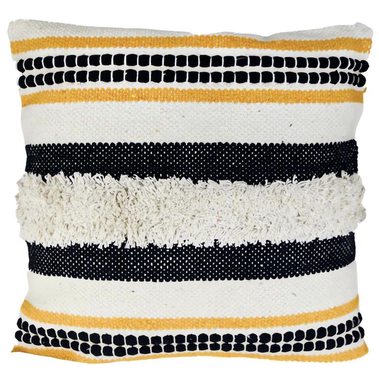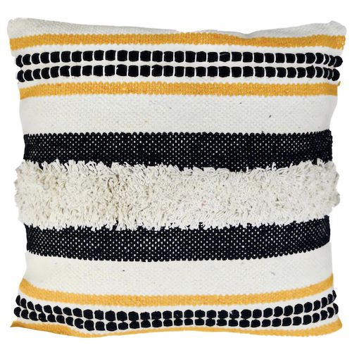 Coussin en coton 45x45 cm MACRAME patna jaune, par Soleil d'Ocre