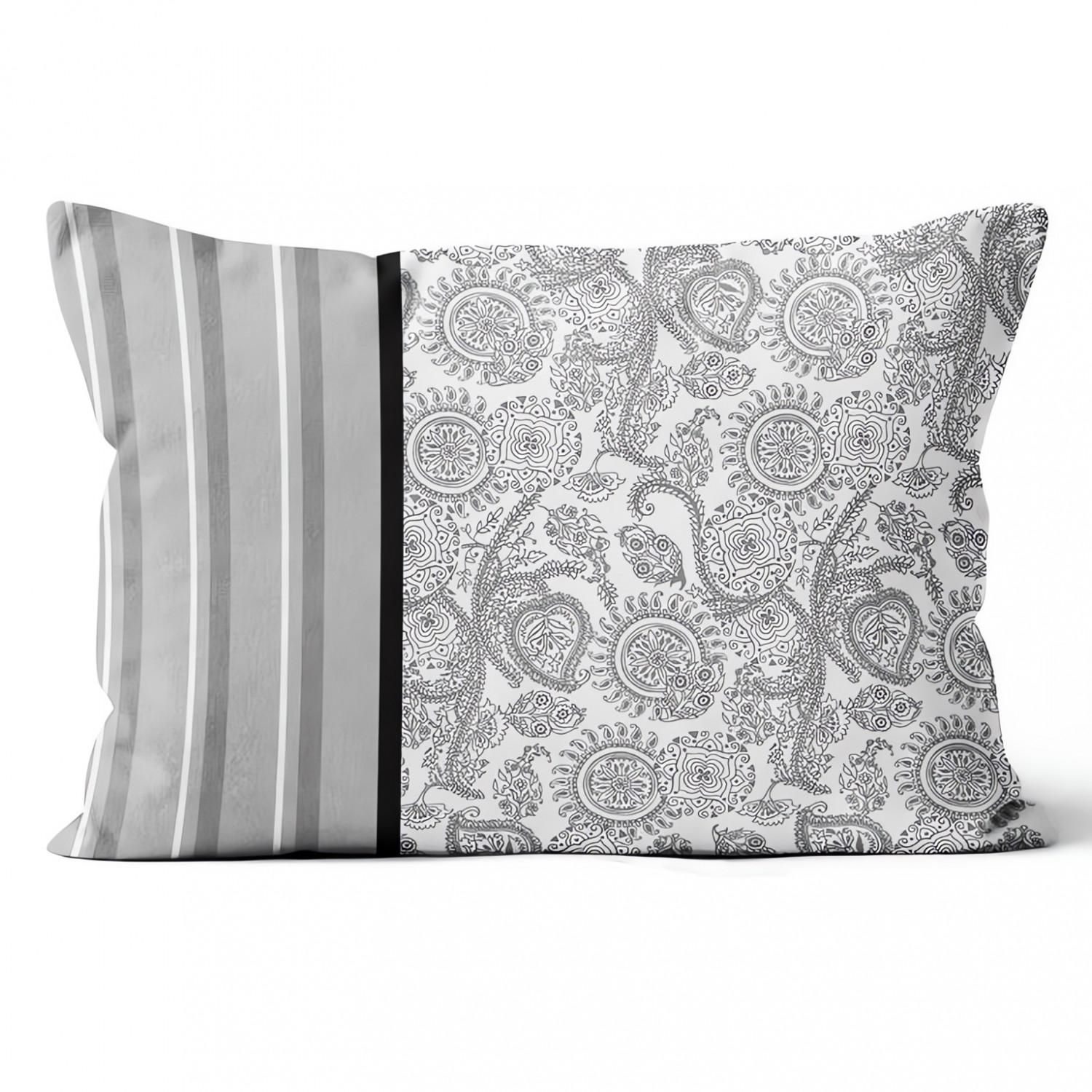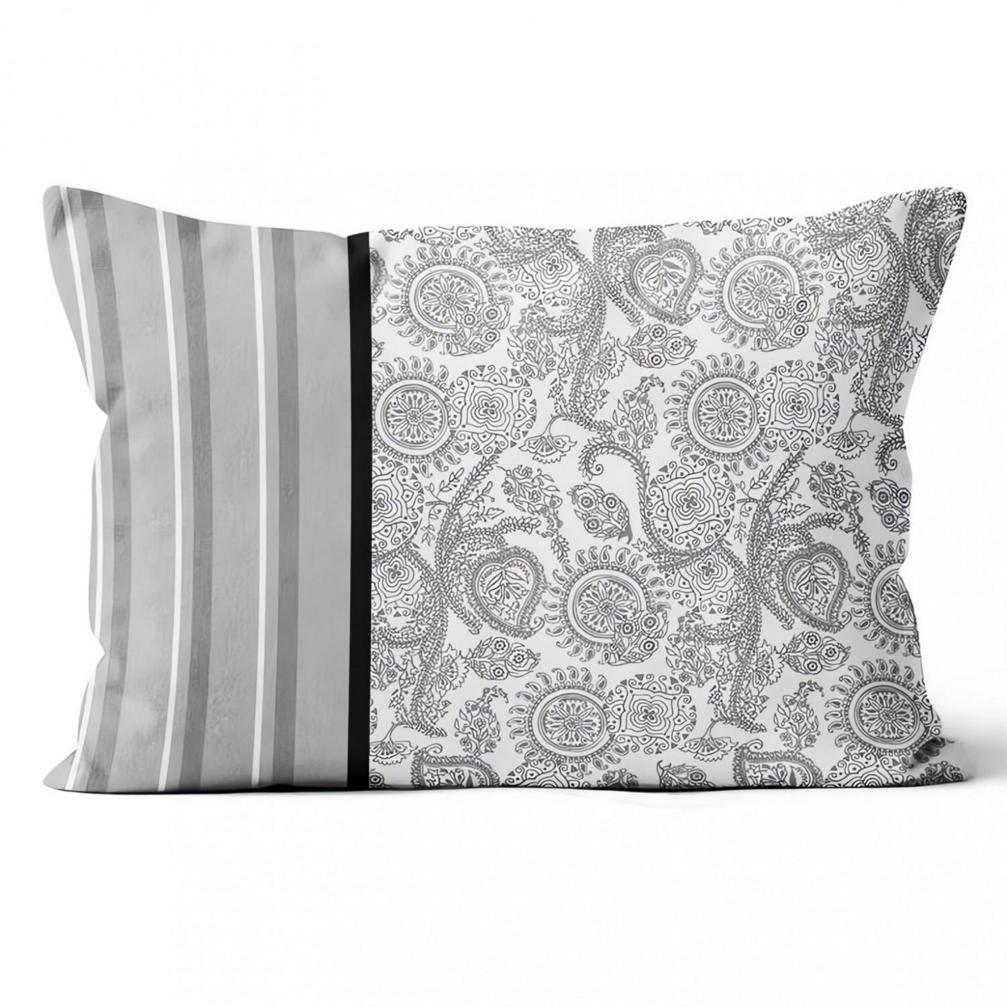 Coussin déco au motif romantique et aux couleurs très tendances. Finition: Fermeture à zip. Couleur: Blanc et gris. Composition : Enveloppe 100 % coton. Garnissage: 100% polyester. Entretien: Lavage à froid en machine.