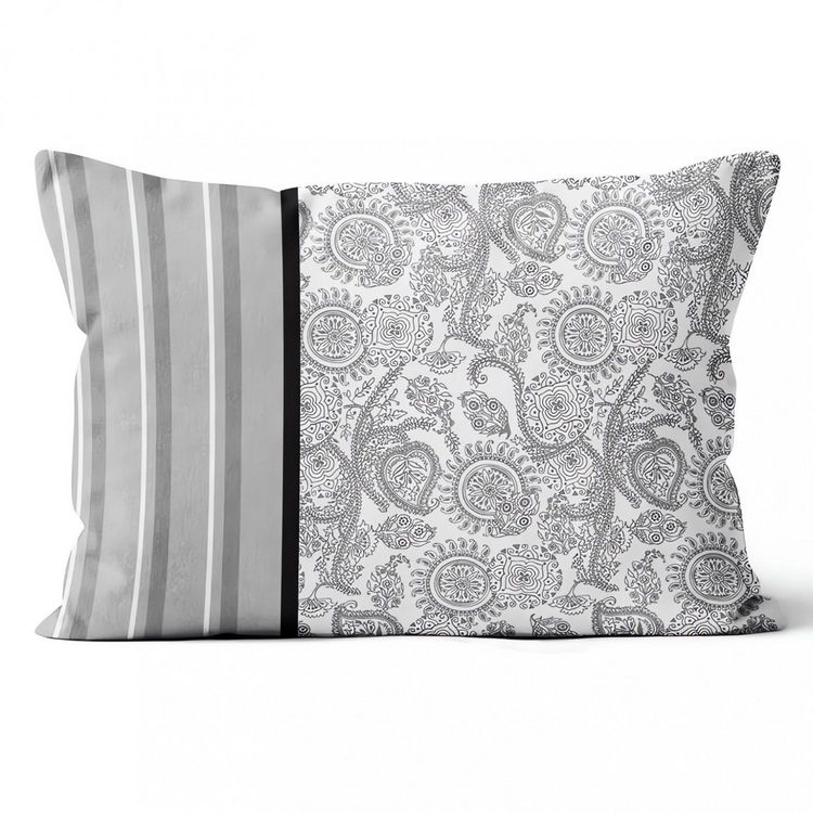 En savoir +Coussin déco au motif romantique et aux couleurs très tendances. Finition: Fermeture à zip. Couleur: Blanc et gris. Composition : Enveloppe 100 % coton. Garnissage: 100% polyester. Entretien: Lavage à froid en machine.