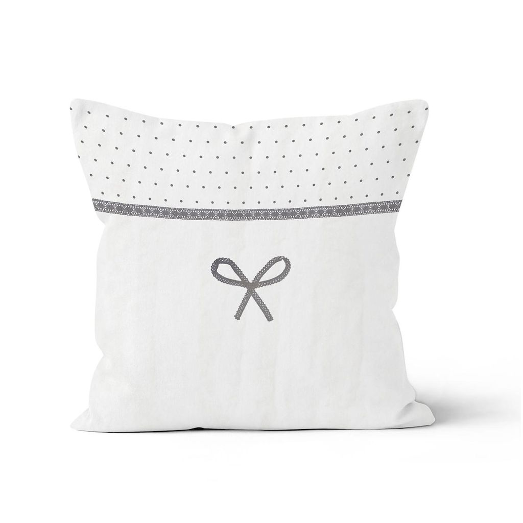 Cette collection EMILIE à l'esprit romantique apportera un peu de douceur àvotre intérieur. Finition: Fermeture à Zip. Noeuds brodés. Parement imprimé pois. Composition: - enveloppe: 100% coton, - garnissage: 100% polyester. Dimensions : 40 x 40 cm. Entretien: Lavage en machine àfroid.