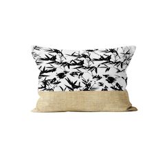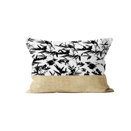 Coussin en coton et parement en jute à l'imprimé feuillage très tendance. Finition: Fermeture à Zip. Imprimé double face. Couleur: Blanc, jute et noir. Composition: - enveloppe: 100% coton avec bande de jute - garnissage: 100% polyester. Entretien: Lavage àfroid en machine.