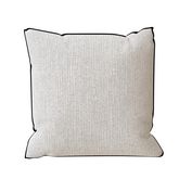 Ce coussin àfines rayures très discrètes et à la finition biais noir habillera naturellement votre intérieur avec beaucoup d'élégance. Finition: Déhoussable, fermeture ZIP. Finition passepoil de couleur noir. Composition: Coton recyclé mélangé, 200 gsm Dimensions: 40x40 cm. Entretien: Lavage en mach