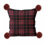 Coussin ultra doux en polaire microfibre à l'imprimé carreaux. Finition: Fermeture à Zip. 4 pompons. Couleur: Rouge et noir. Composition: - enveloppe: 100% polyester microfibre - garnissage: 100% polyester. Dimensions: 45x45 cm Entretien: Lavage en machine à 30 degrès.