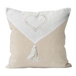 Cette collection Elena apportera àvotre intérieur douceur et sobriété. Finition: Fermeture à Zip. Coeur en broderie. Pompon blanc. Couleur: Ecru et Blanc. Composition: - enveloppe:100% coton lavé - garnissage: 100% polyester. Entretien: Lavage àfroid en machine.