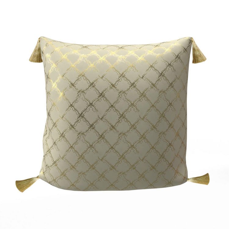 Cette collection CELESTE au motif géométrique élégant et discret sera parfaite pour chacune de vos célébrations!!! Finition: 4 pompons dorés. Impression or. Couleur: Ecru et or. Composition: 100% coton. Dimension: 40x40 cm Entretien: Lavage à froid en machine. En savoir plus : Ce produit est certifié de la norme OEKO-TEX® Standard 100 - Cette certification vise à garantir la non-toxicité des textiles et des colorants.