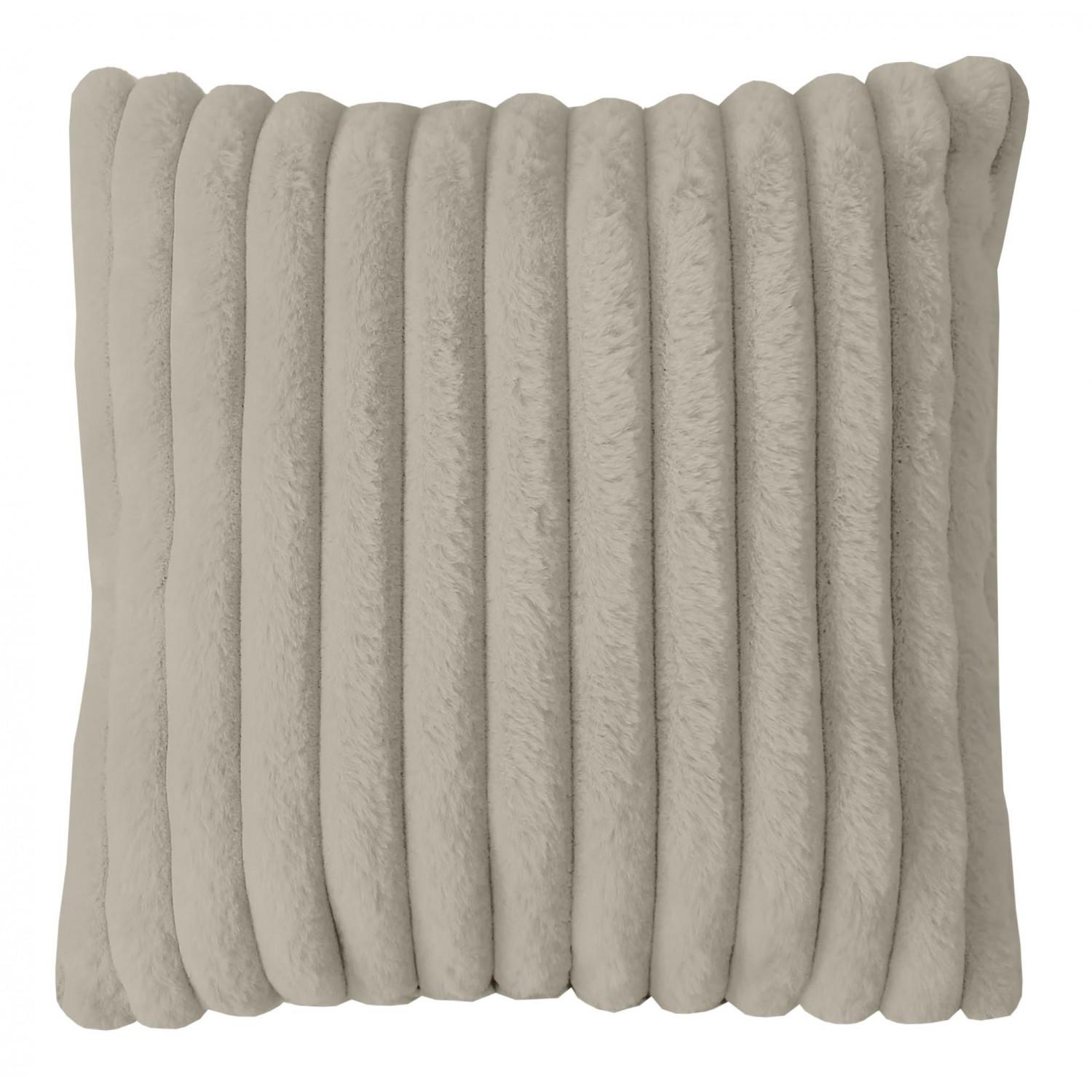 Coussin déhoussble en flanelle. Toucher très doux. A rayures. Composition: - Enveloppe: flanelle polyester 310 Gr/m2 - Garnissage: 100% polyester Dimension: 45x45 cm.