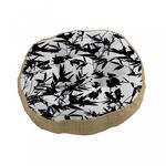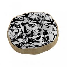 Coussin rond en coton et parement en jute, à l'imprimé feuillage très tendance. Finition: Imprimé double face. Piquage 5 points. Couleur: Blanc, jute et noir. Composition: - enveloppe: 100% coton avec bande de jute, - garnissage: 100% coton. Dimensions: 40X8 cm. Entretien: Lavage à froid en machine.