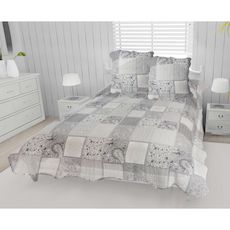 Boutis imprimé matelassé 220x240 cm et ses 2 taies d'oreiller 65x65 cm Double face Finition bords festonnés Pré-lavé Qualité : 100% coton