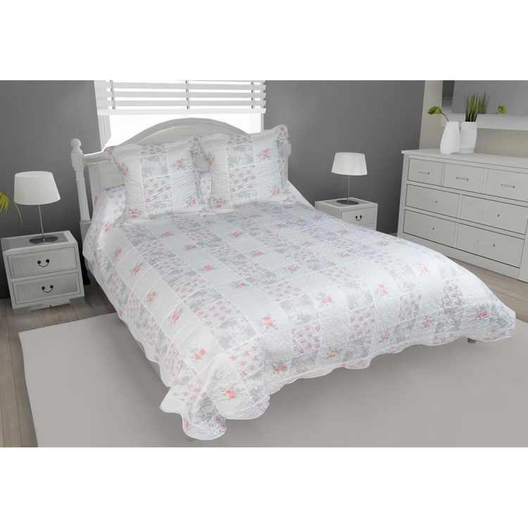En savoir +Boutis imprimé matelassé 220x240 cm et ses 2 taies d'oreiller 65x65 cm Double face Finition bords festonnés Pré-lavé Qualité : Enveloppe microfibre100% polyester, intérieur 100% coton