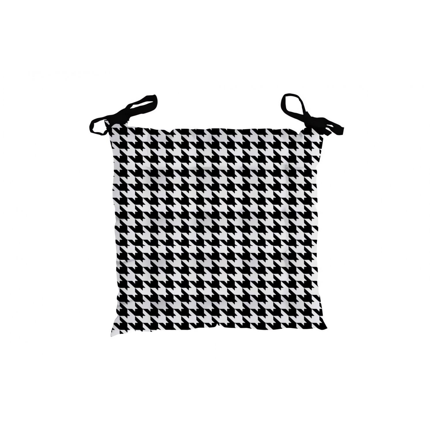 En savoir +Galette de chaise capitonnée en pur coton, motif pied de poule. Finition: Attaches à nouettes, piquage 16 points. Imprimé double face. Couleur: Blanc et noir. Composition: - enveloppe 100 % coton, - garnissage: 100% coton. Dimensions: 40x40x5 cm. Entretien: Lavage à froid en machine.