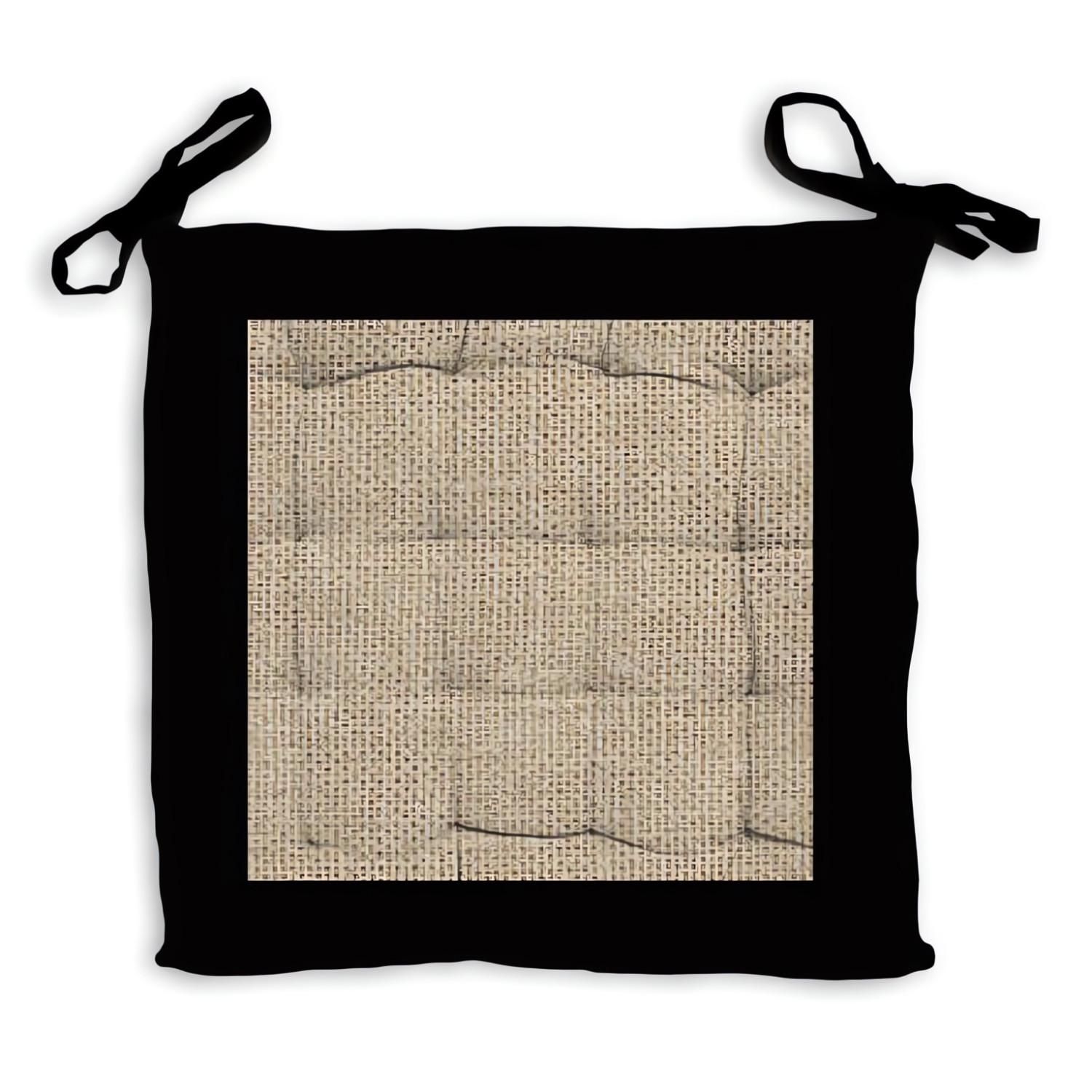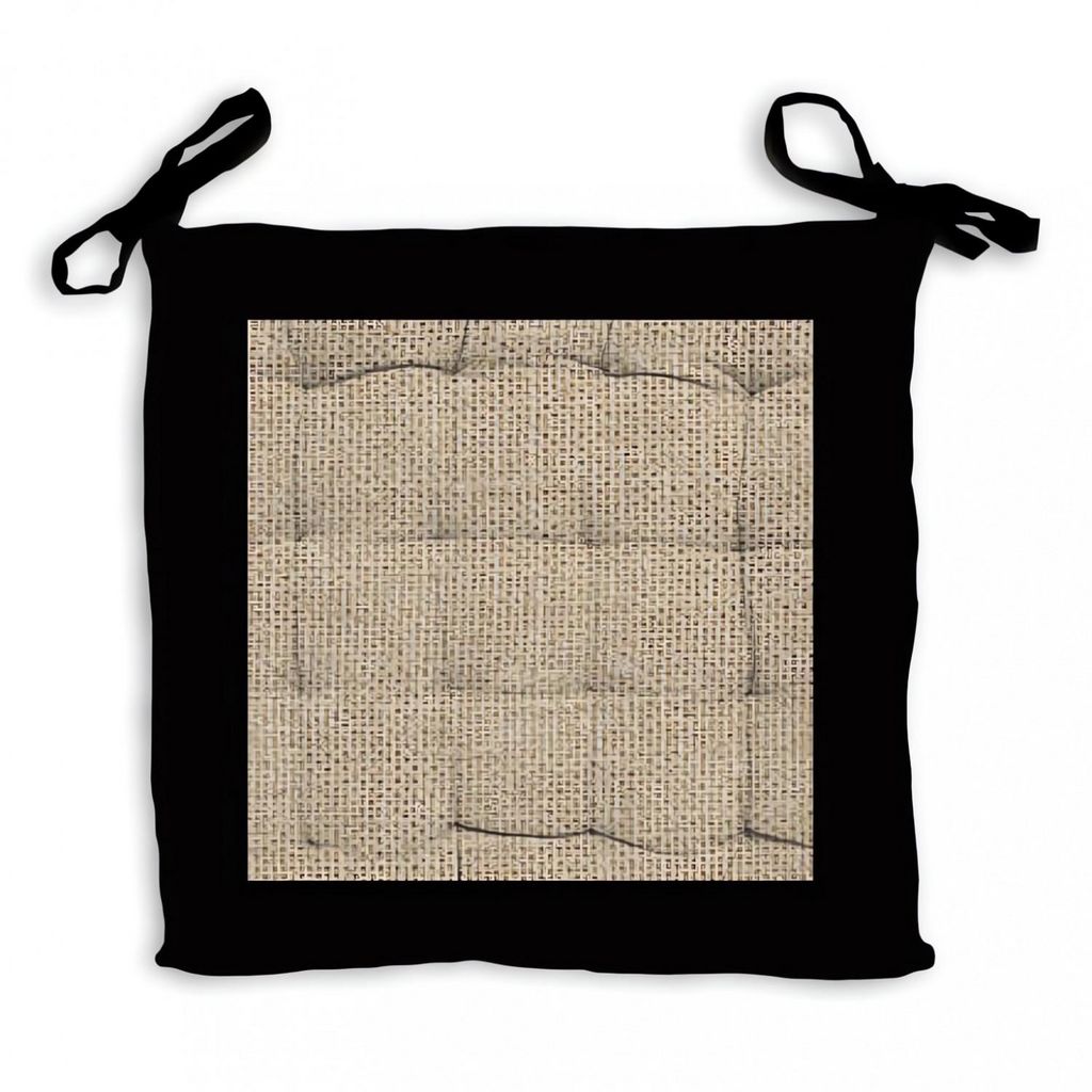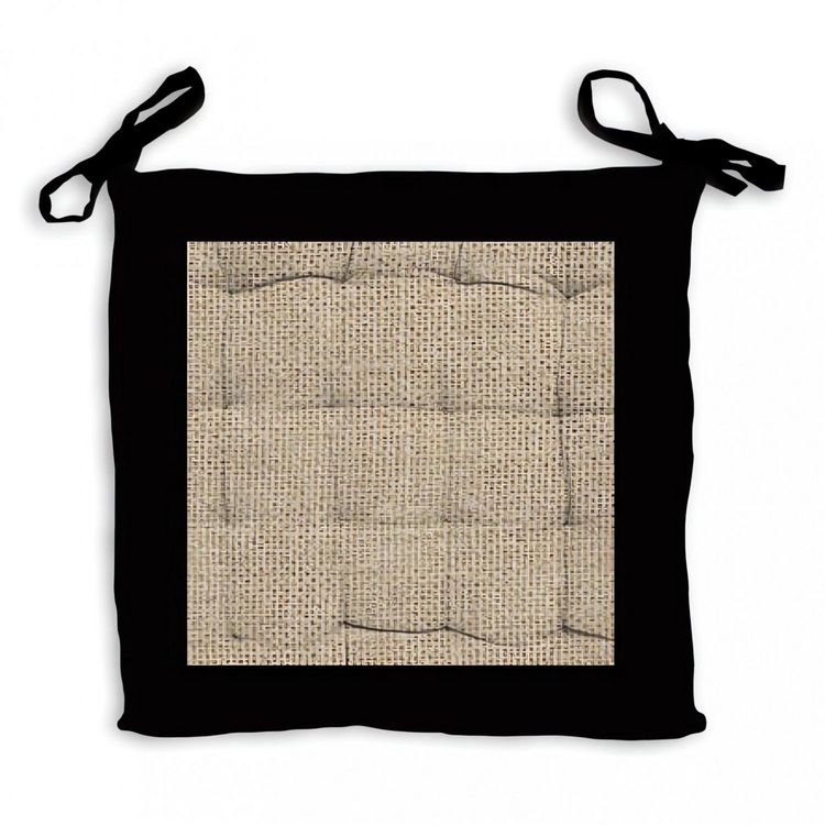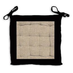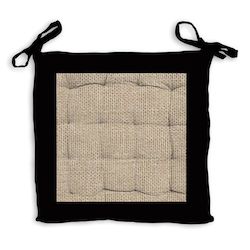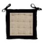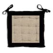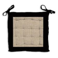 Galette de chaise capitonnée en jute et coton lavé: idéal pour un esprit à la fois nature et moderne. Finition: A nouettes, piquage 16 points. Couleur: Naturel et noir. Composition: 100 % coton. Dimensions: 40x40x5 cm. Entretien: Lavage à froid en machine.