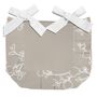 Dessus de chaise en pur coton avec broderie et dentelle pour un effet charme assuré!!! Finition: Attaches à nouettes. A volants. Couleur: Taupe et blanc. Composition: - enveloppe:100 % coton, - garnissage: mousse polyuréthane. Dimensions: 40x40x3 cm. Entretien: Lavage en machine à froid.
