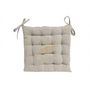 En savoir +Si vous souhaitez décorer votre intérieur, et habiller vos chaises, les dessus de chaise vous ravirons. Confortable et chic avec son impression doré, le dessus de chaise capitonné Baguette est facilement attachable avec ses nouettes. Attache par nouettes Composition : enveloppe 100% coton et garnissage 100% coton Dimensions : 40 x 40 x 5 cm