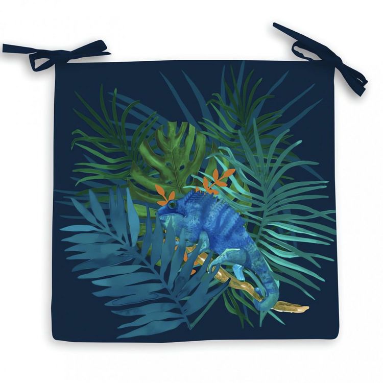 Ce dessus de chaise AMAZONIE au design végétal et aux couleurs très actuels habillera vos chaises extérieures avec style. Idéal pour créer une atmosphère tropicale. Un bel hommage à Dame Nature! Dessus de chaise extérieur enduit. Composition: enveloppe 100% polyester, garnissage mousse polyester Attaches à nouettes Dimensions: 40x40x5 cm