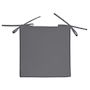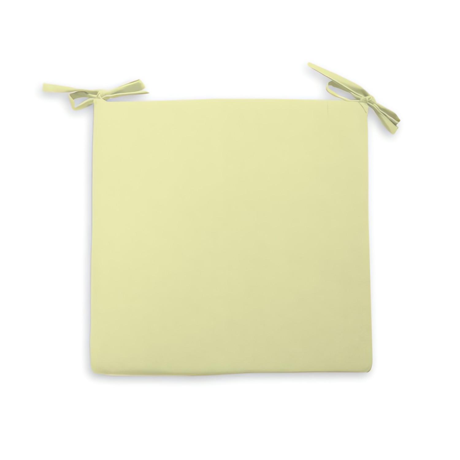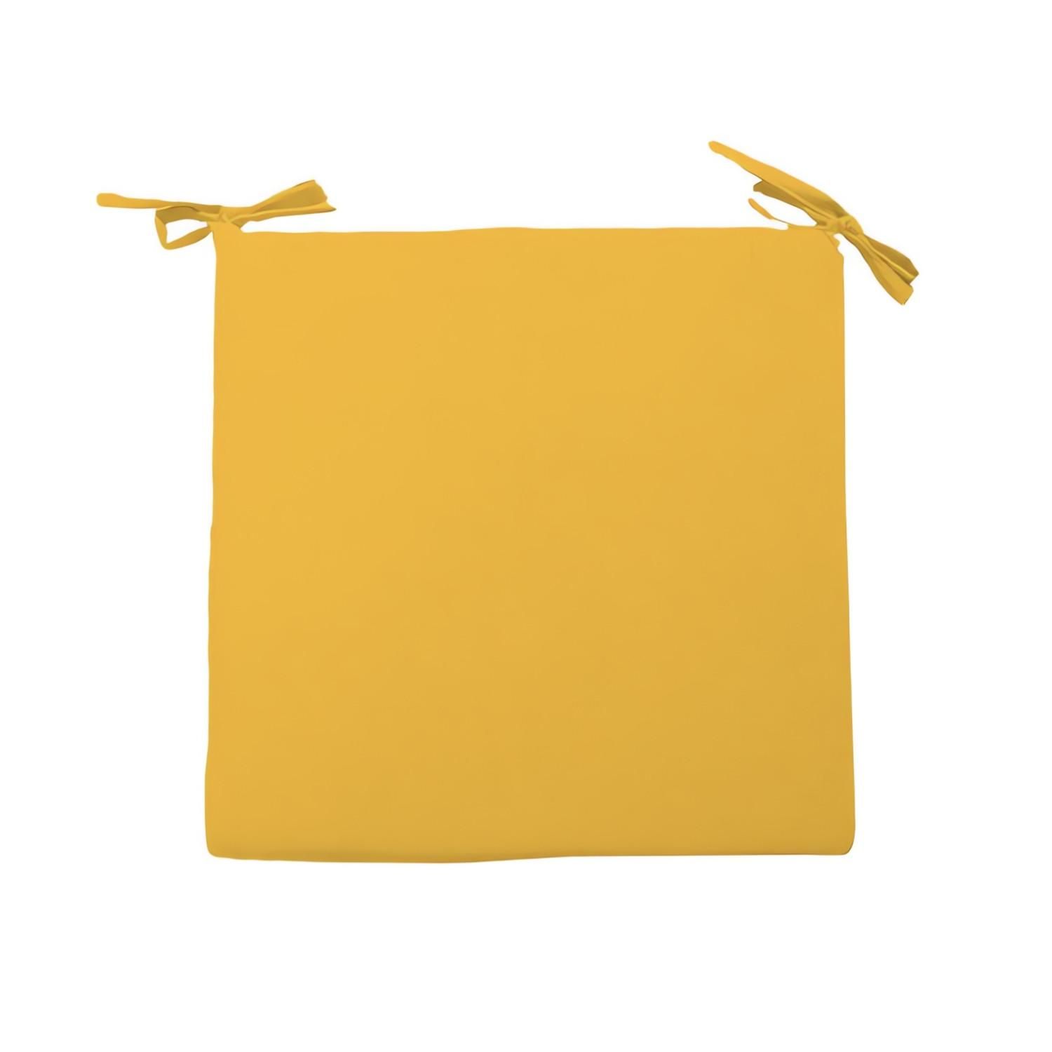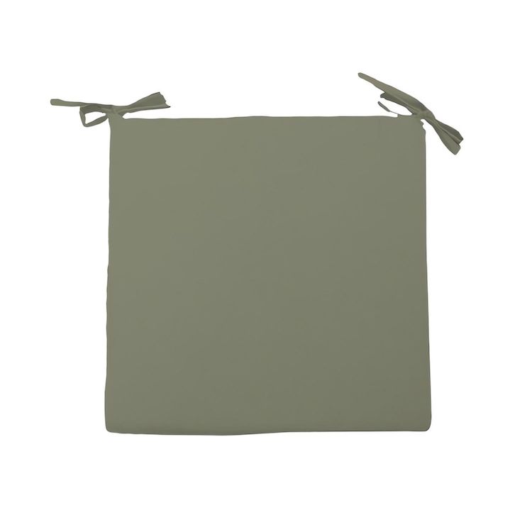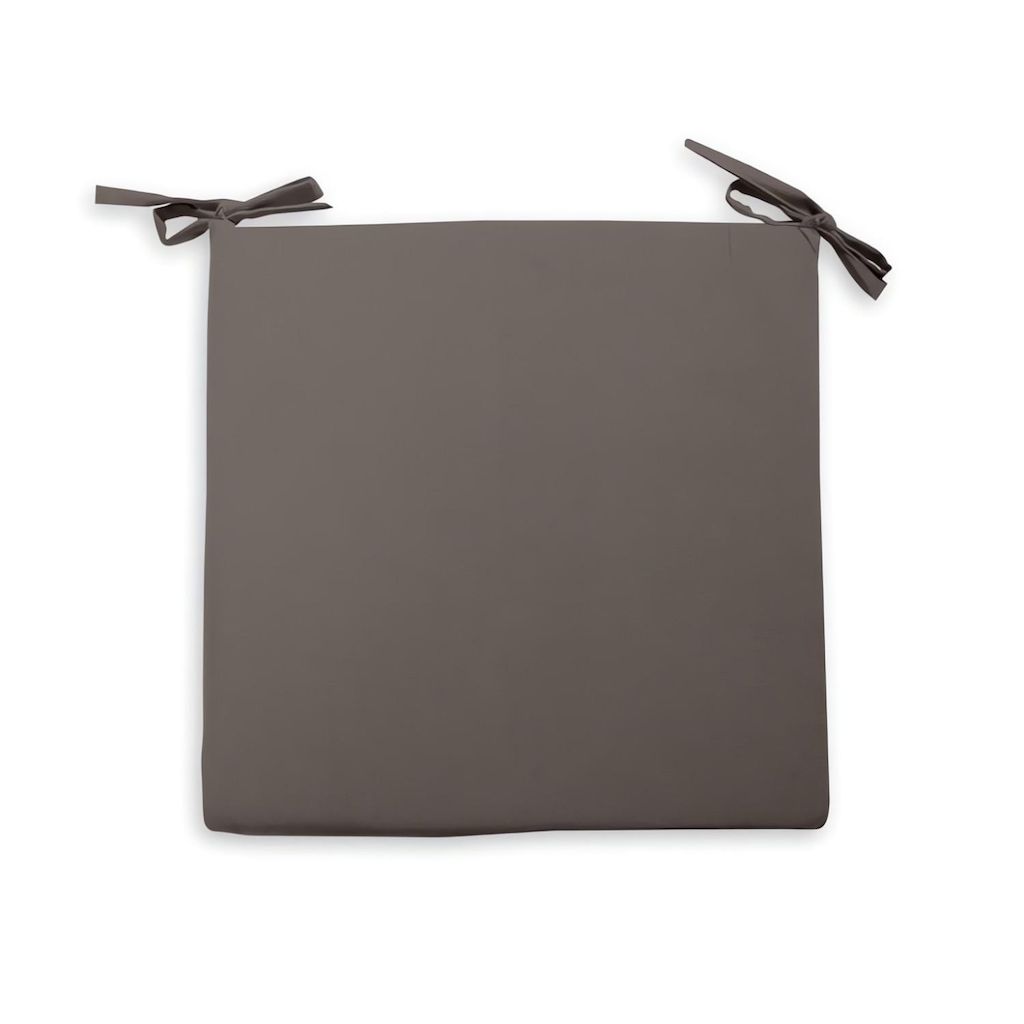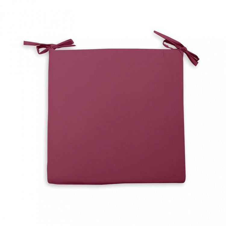 Galette de chaise extérieure enduite imperméable. Finition: - A nouettes. Composition: - enveloppe: 100% polyester, - garnissage: mousse polyuréthane. Dimensions: - 40x40x5 cm. Entretien: - Lavage en machine à 30 degrés.
