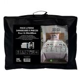 Pack complet de literie pour lit 1 place en 90x190 cm (5 Pieces). Prix malin. Couleur: Rose. Se compose de: - 1 Couette blanche DOUCEUR 140x200 cm (Enveloppe: microfibre, 350 gr). - 1 Oreiller blanc CONFORT 60x60 cm Anti-acarien (Enveloppe: microfibre, Garnissage: fibre creuse siliconnée 550 Gr). -