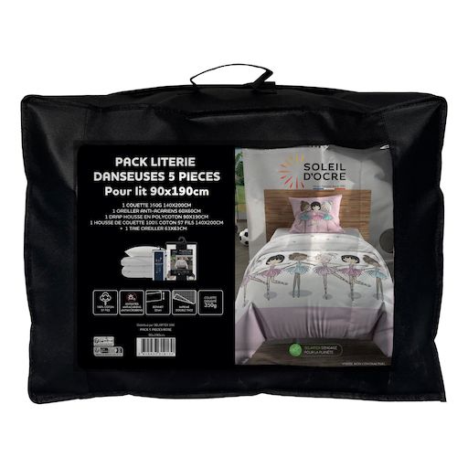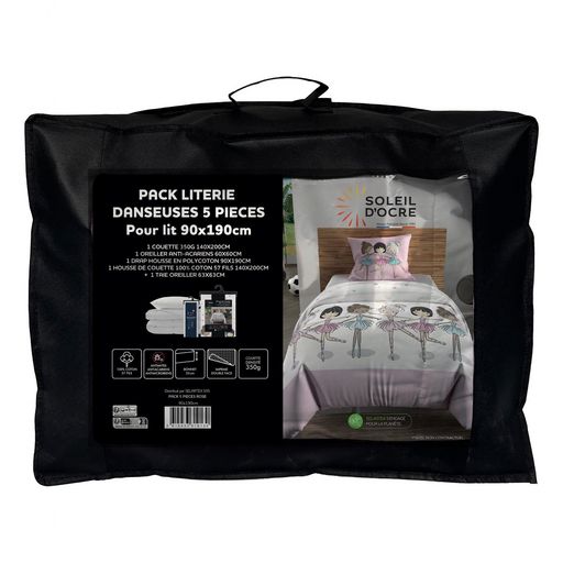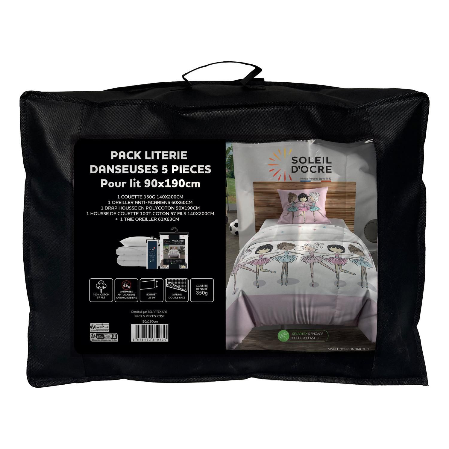 Ensemble couette et parure 5 Pièces DANSEUSES rose pour lit en 90x190 cm, par Soleil d'ocre