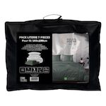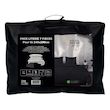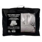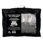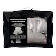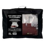Pack complet de literie pour lit 2 places (7 Pieces). Prix malin. Se compose de: - 1 Couette blanche DOUCEUR (Enveloppe: microfibre, 350 gr). - 2 Oreillers blancs CONFORT 60x60 cm Anti-acarien (Enveloppe: microfibre, Garnissage: fibre creuse siliconnée 550 Gr). - 1 Drap housse ZZZ (55% polyester, 4