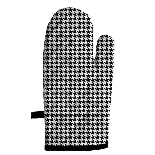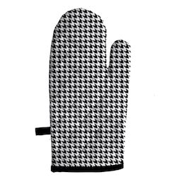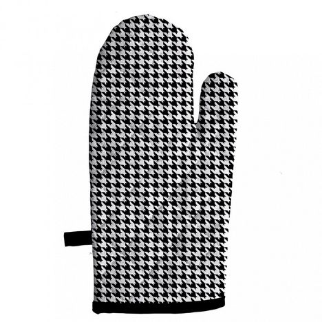 Gant de cuisine en pur coton, style pieds de poule. Il vous protègera parfaitement lors de vos expériences culinaires! Couleur: blanc et noir. Composition: 100 % coton. Dimension: 16x32 cm. Entretien: lavage 40°C