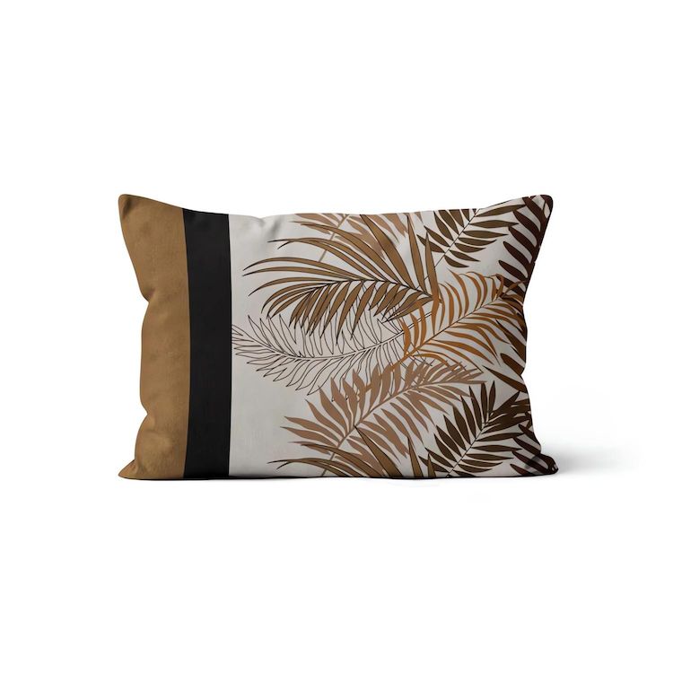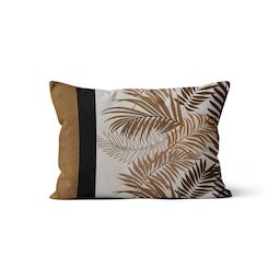 Housse de coussin rectangle décoratif en velours imprimé, style jungle. Toucher très doux, double face imprimée. Finition: avec zip. Couleur: gris, ocre et corail. Composition: velours 100 % polyester. Dimension: 32x50 cm. Entretien: - entretien facile, repassage inutile. - lavage 40°C.