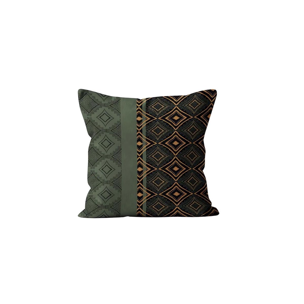 Coussin décoratif déhoussable en velours imprimé, style ethnique. Toucher très doux, double face imprimée . Finition: avec zip. Couleur: vert et jaune. Composition: velours 100 % polyester. Dimension: 40x40 cm. Entretien: - entretien facile, repassage inutile. - lavage 40°C.