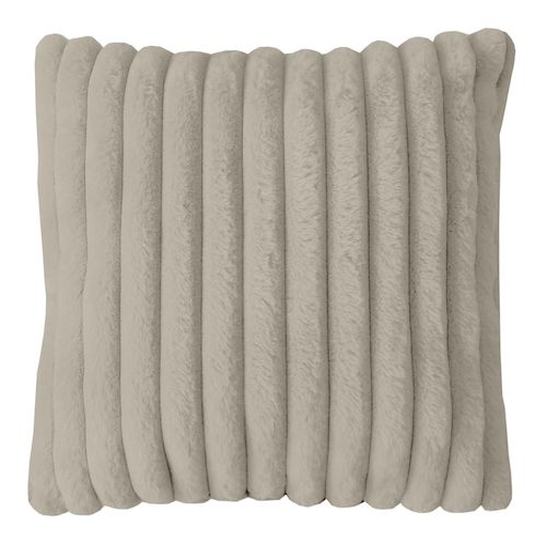 Housse de coussin déhoussble en flanelle. Toucher très doux. A rayures. Composition: - enveloppe: flanelle polyester 310 Gr/m2 Dimension: 60x60 cm.
