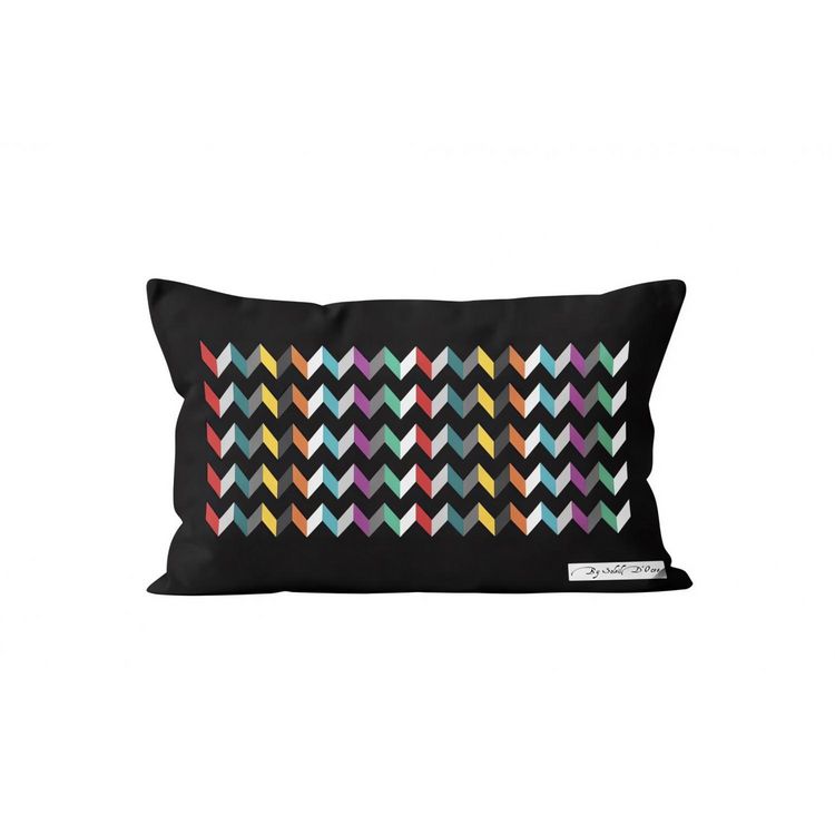 Un petit coussin imprimé géométrique, parfait pour une décoration moderne et tendance. Ultra pratique à laver avec son zip sur le côté ! Toucher doux, double face imprimée Composition : 100% polyester microfibre 90 Gr/m2