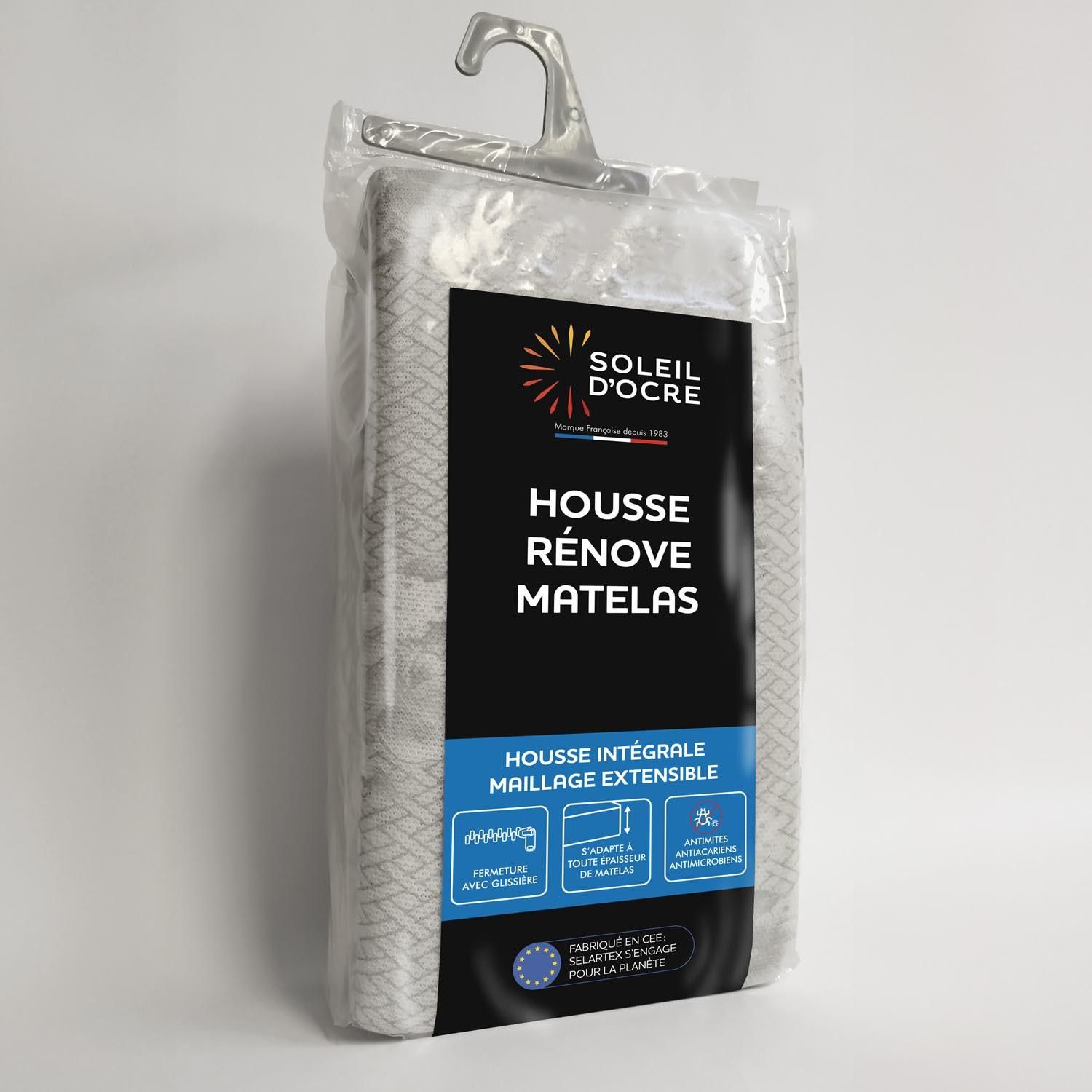 Housse intégrale rénove matelas, protège matelas extensible àdouble maille. Fermeture àglissière. S'adapte àtoutes les épaisseurs de matelas. Hypoallergénique. Economique et pratique. Couleur: Gris Composition: 100% polyester. Fabrication européenne