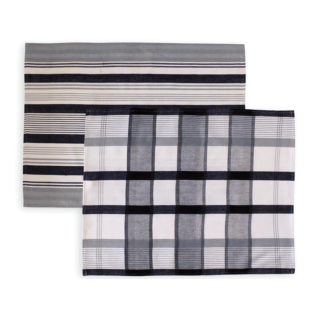 Lot de 2 torchons en coton PAELLA noir, jacquard 50x70 cm