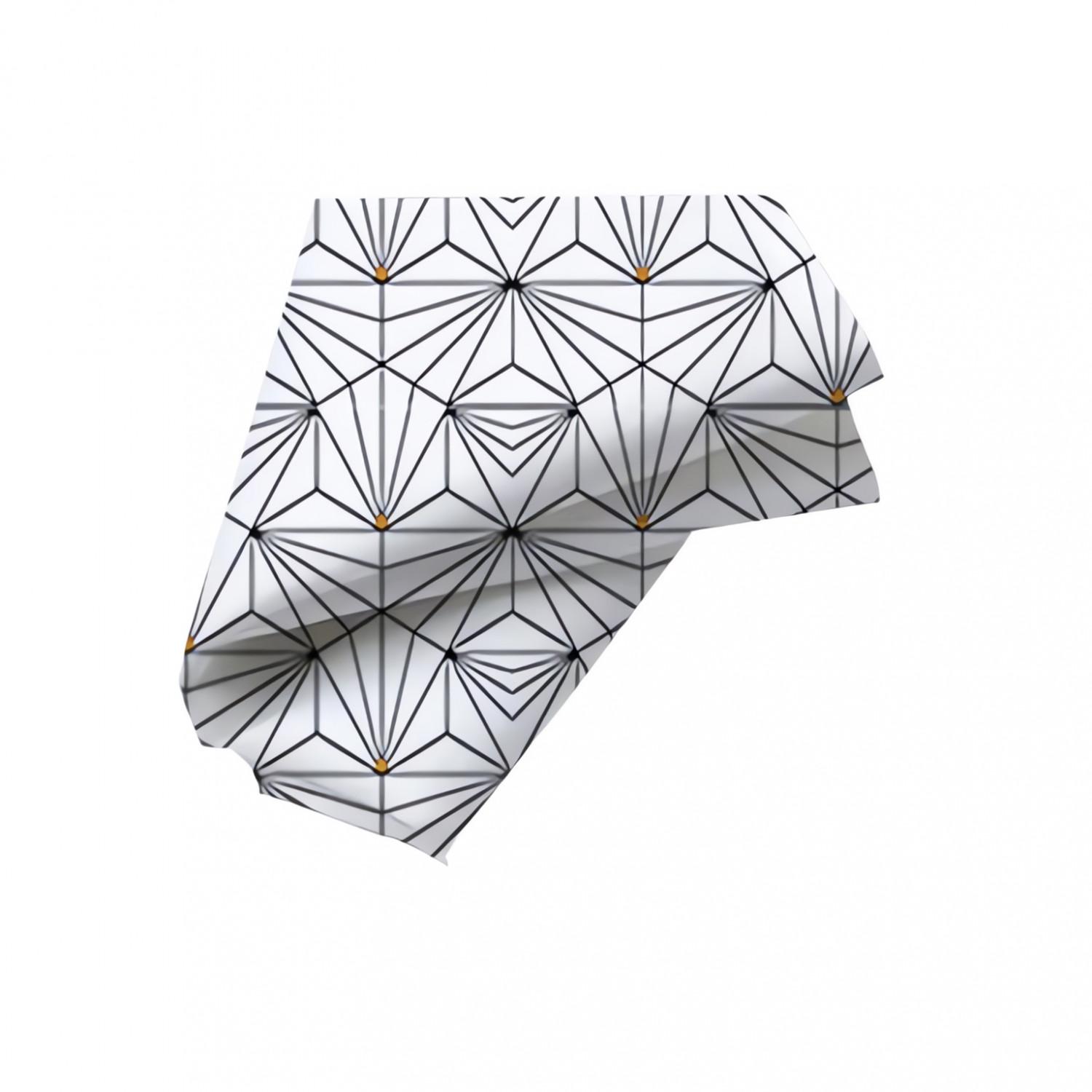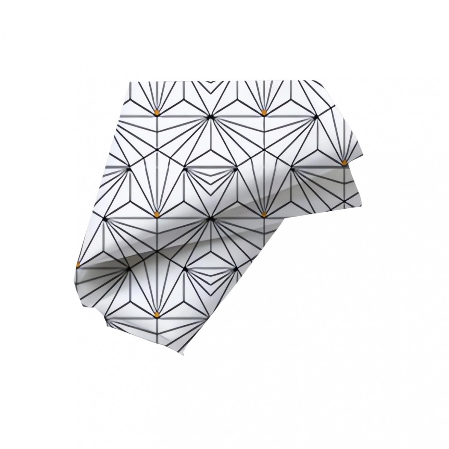 Lot de 3 serviettes de table imprimées en pur coton, style moderne. Couleur: blanc, noir et or. Composition: 100 % coton. Dimension: 45x45 cm. Entretien: lavage 40°C